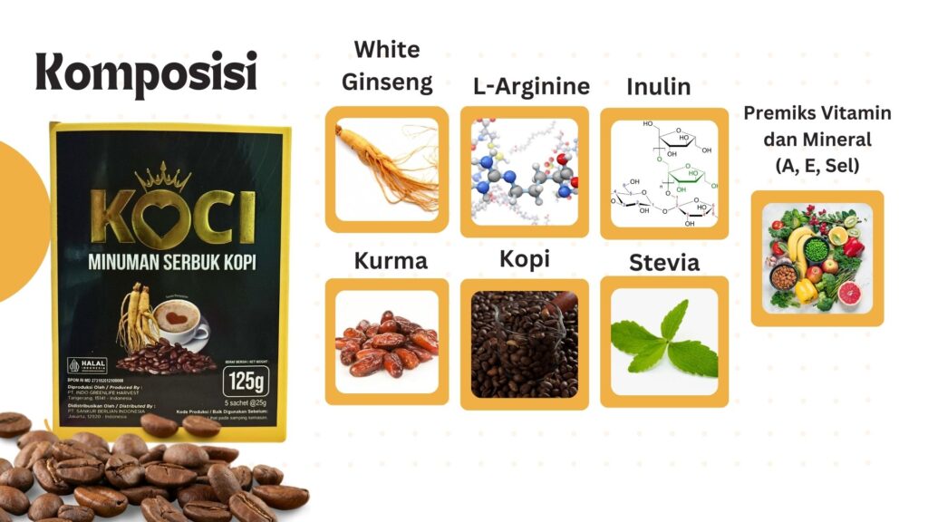 Dari berbagai masalah diatas kini hadir kopi dengan rasa gingseng yang sudah teruji sertifikasi baik nasional dan internasional yaitu Kopi KOCI, Kopi Kesehatan yang dirancang khusus untuk meningkatkan stamina pria sejati dengan berbagai kandungan dengan bahan baku yang terbaik.